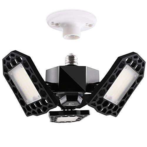 Consumer Reviews LED Garage Light, Deformable Garage Ceiling Light, 60W, 8000LM, 6000K Daylight, E26/E27 Socket Include, Fits for Garage Warehouse Basement Workshop and Yard Shop Light, Barn Light, High Bay Light